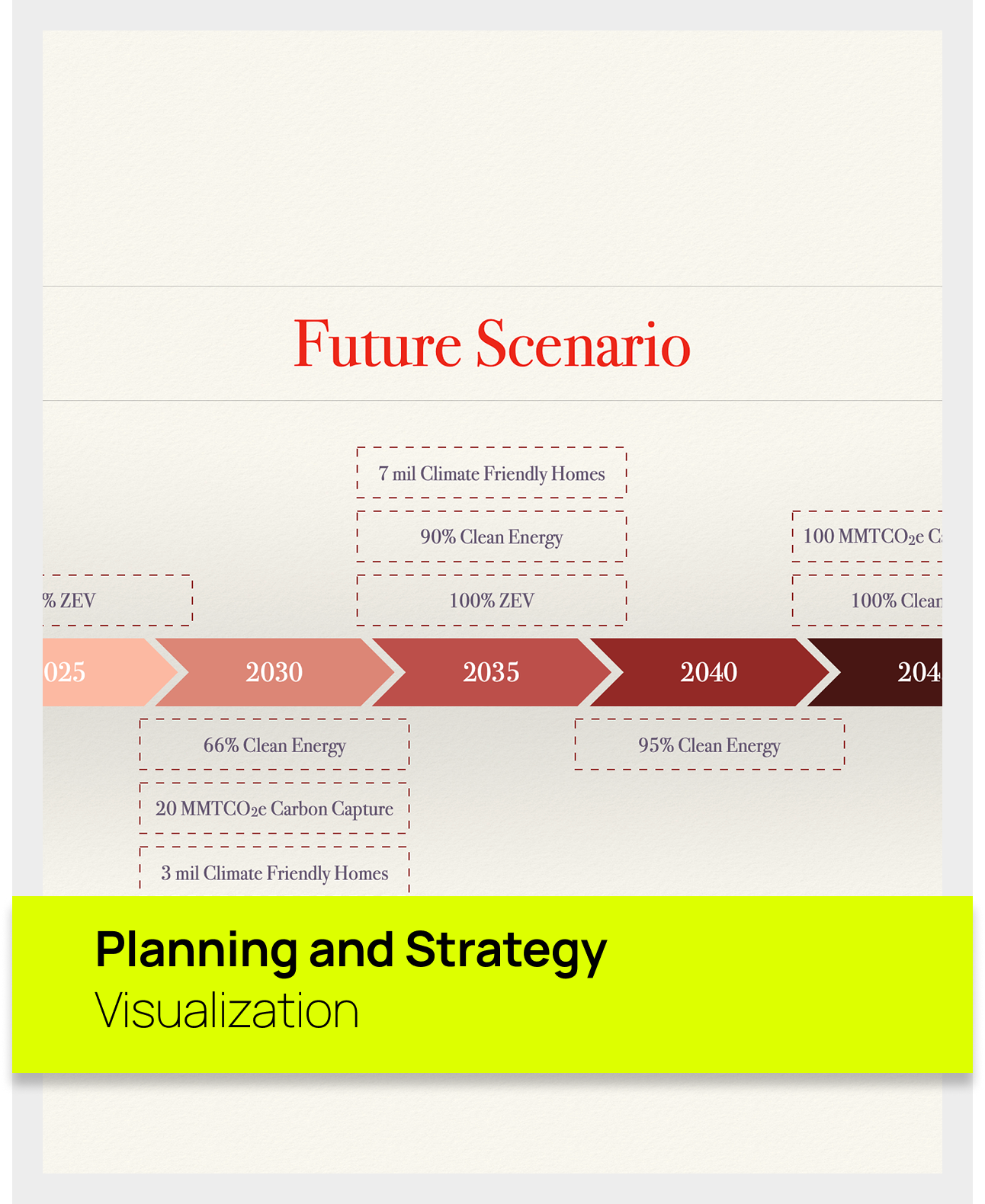 Visualized strategies and timeline to achieve the California Energy Commission target of 100% renewable energy by 2045