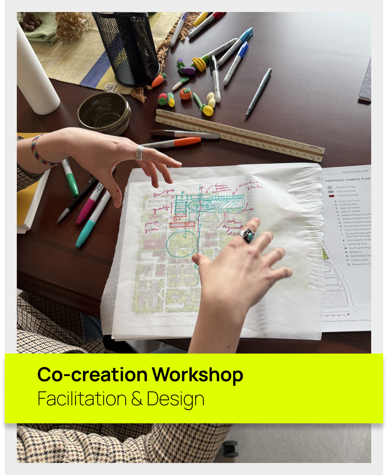 Organized co-creation workshops with graduate and undergraduate students at the University of Notre Dame to embed mobility theory and strategies into their design projects, validating the potential of mobility-centered frameworks in planning practice.