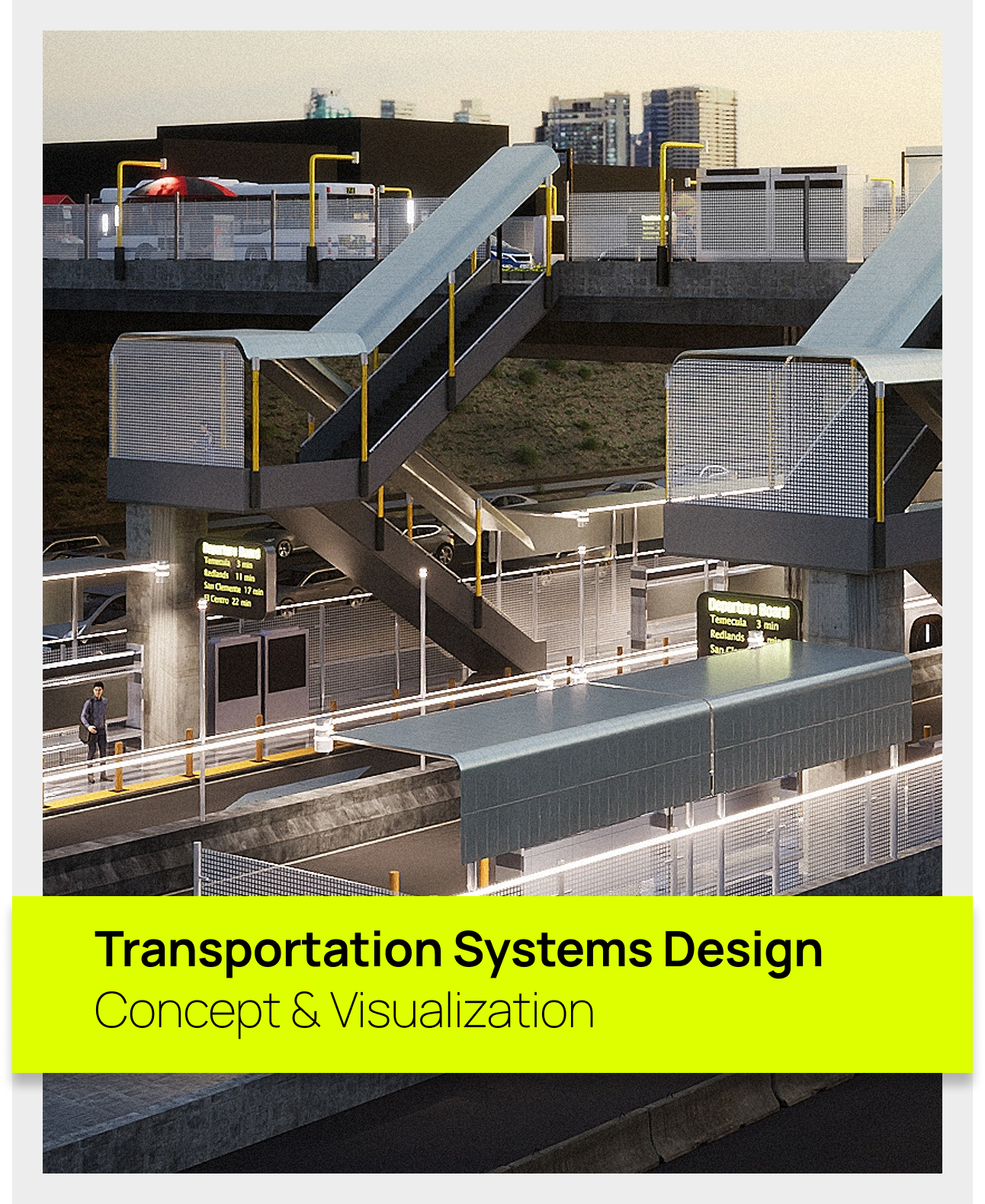 Contributed with Caltrans to the early development of a visionary project aimed at transforming Los Angeles’ freeway system into a more sustainable, accessible, and community-oriented infrastructure. Designed multi-use spaces and transit stations that integrate with surrounding neighborhoods, promote local economies, and ensure equitable access to transit.